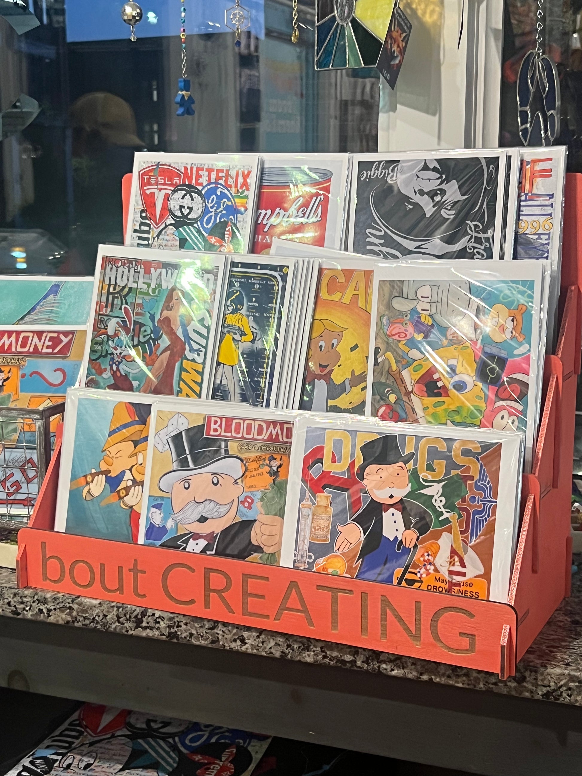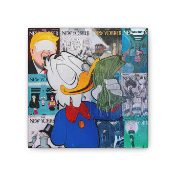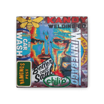 As a skateboarder and graffiti artist, Robert learned to translate motion, rebellion, and grit into visual form. His current work carries those roots forward while colliding with the pop imagery of his generation. From Roger Rabbit to Tupac to the Morton Salt Girl, his pieces remix familiar characters and logos with the same layered energy of graffiti walls and hip hop beats.