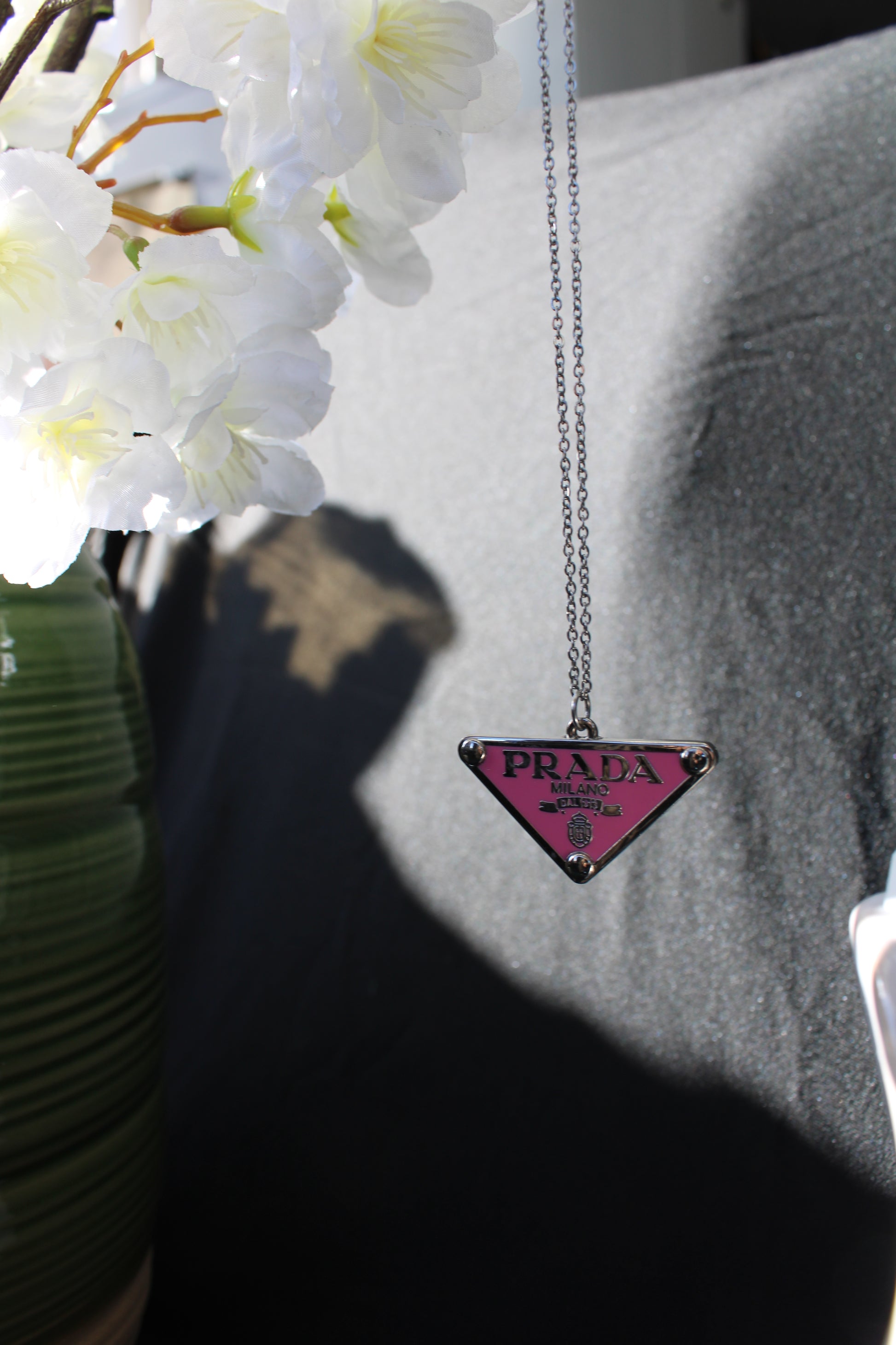 Up-Cycled Designer Chanel Pendant on Silver Stainless Chain. Water resistant. Solid gold or gold filled options are available, just ask.