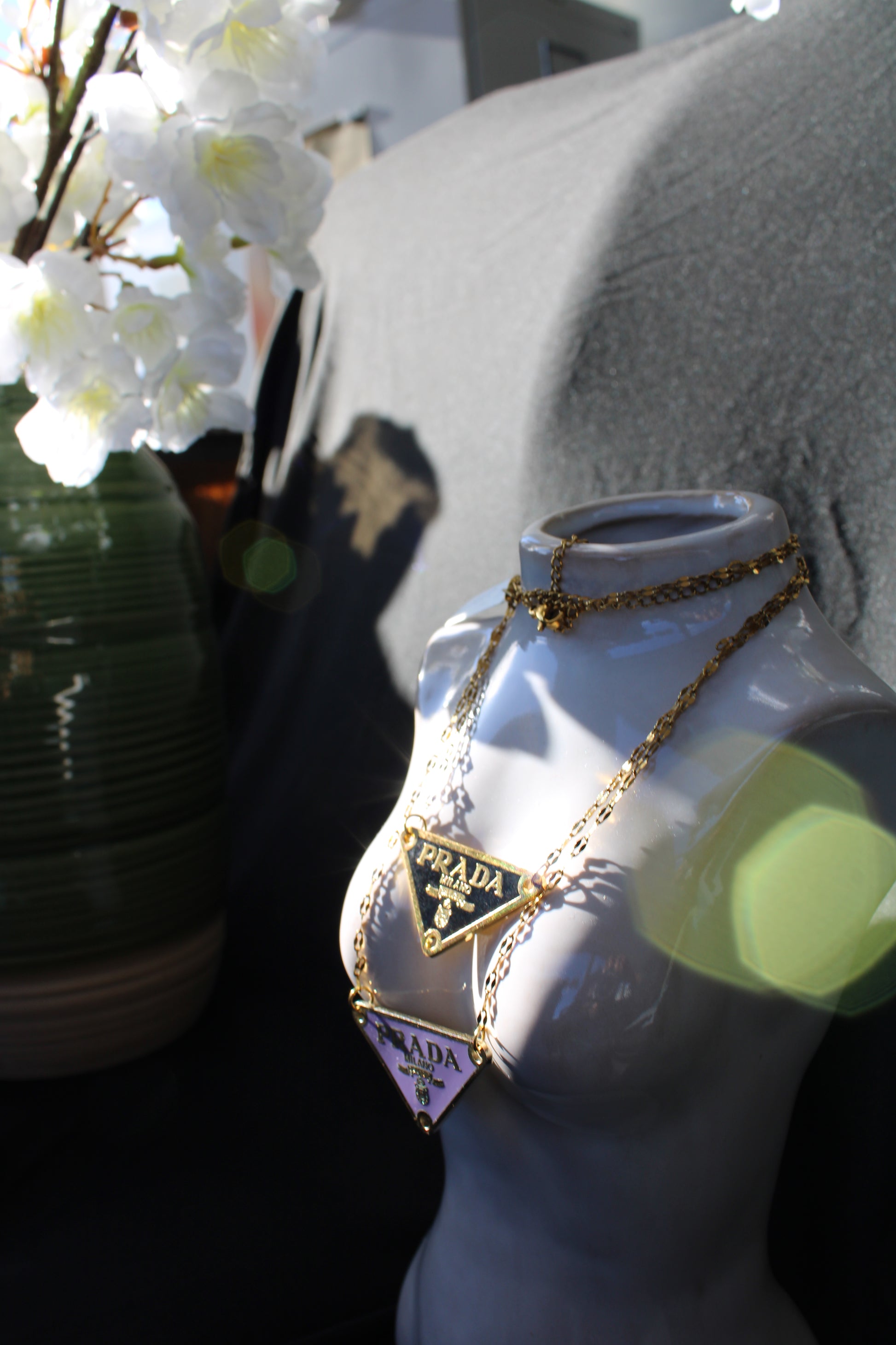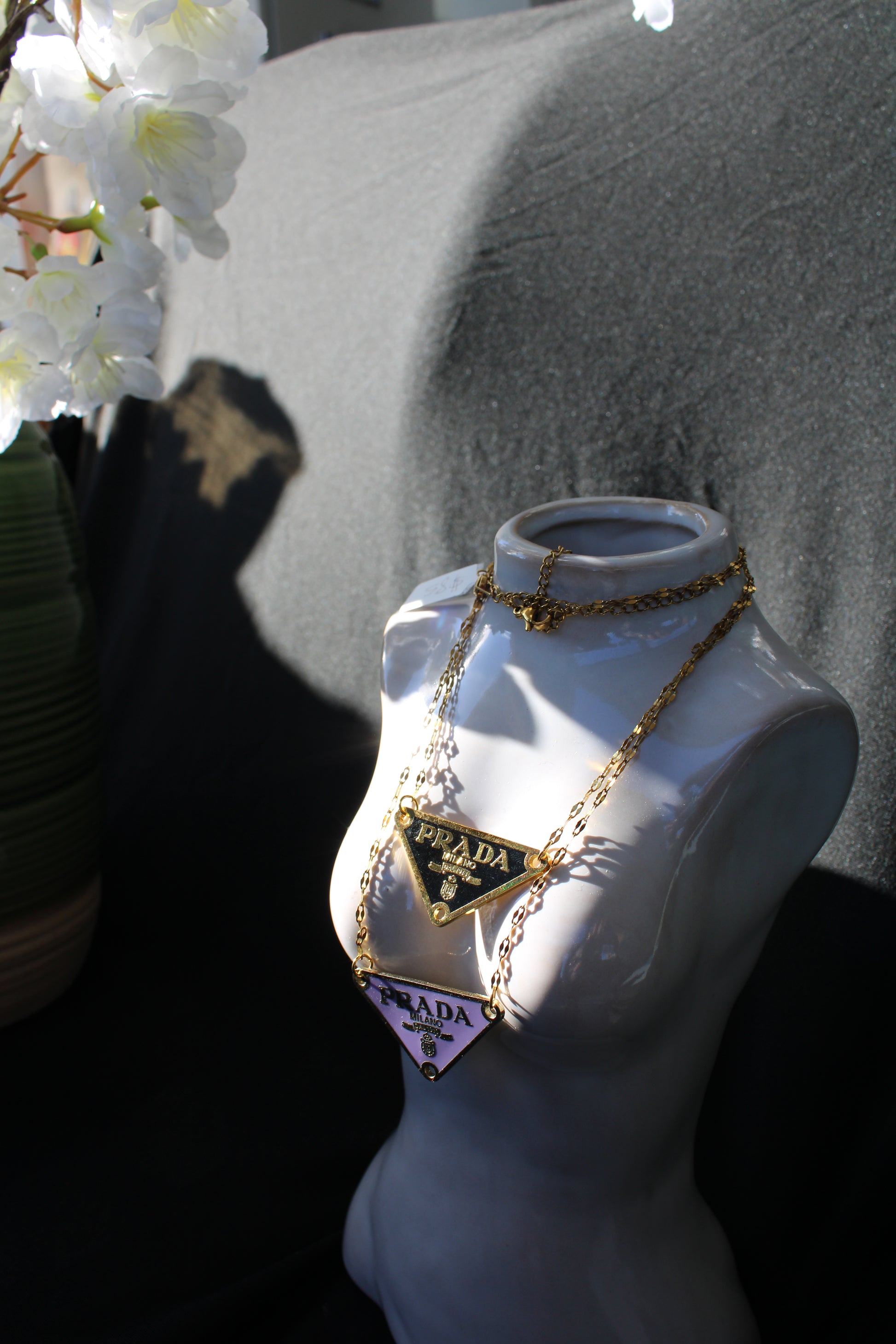 Up-Cycled Designer Chanel Pendant on Gold Plated Stainless Chain. Water resistant. Solid gold or gold filled options are available, just ask.