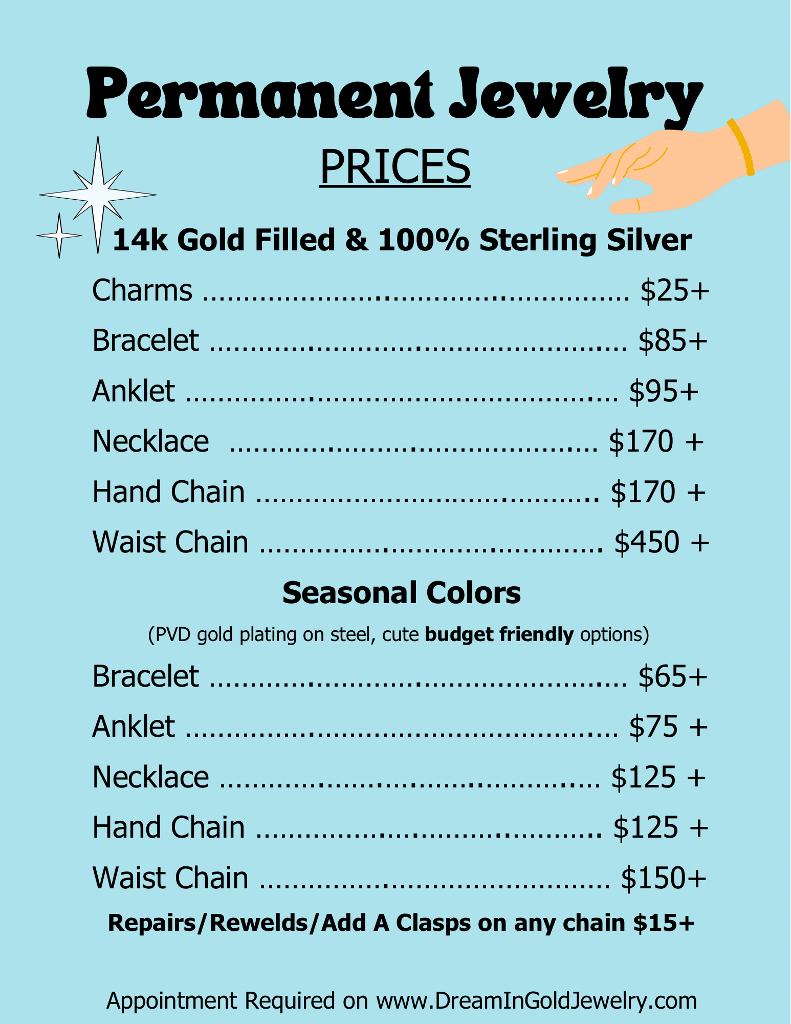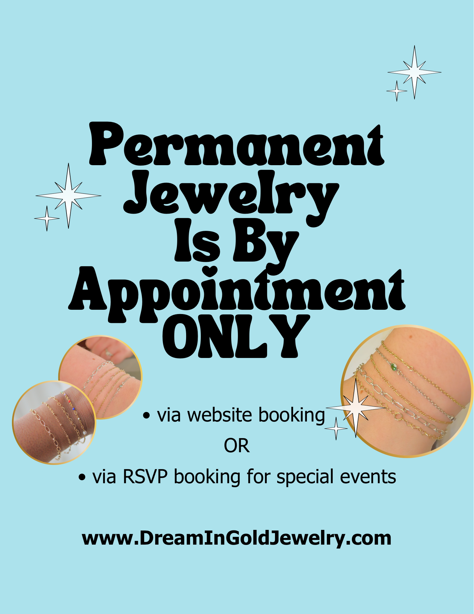100% sterling silver or 14 carat gold filled chains for permanent jewelry bracelets, anklets or necklaces - Onsite only at